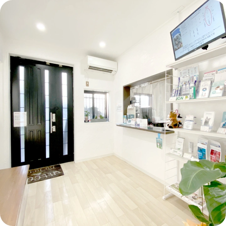 当院は、ごく普通の住宅のような外観です。病院嫌いの動物たちも安心してご来院いただけます。